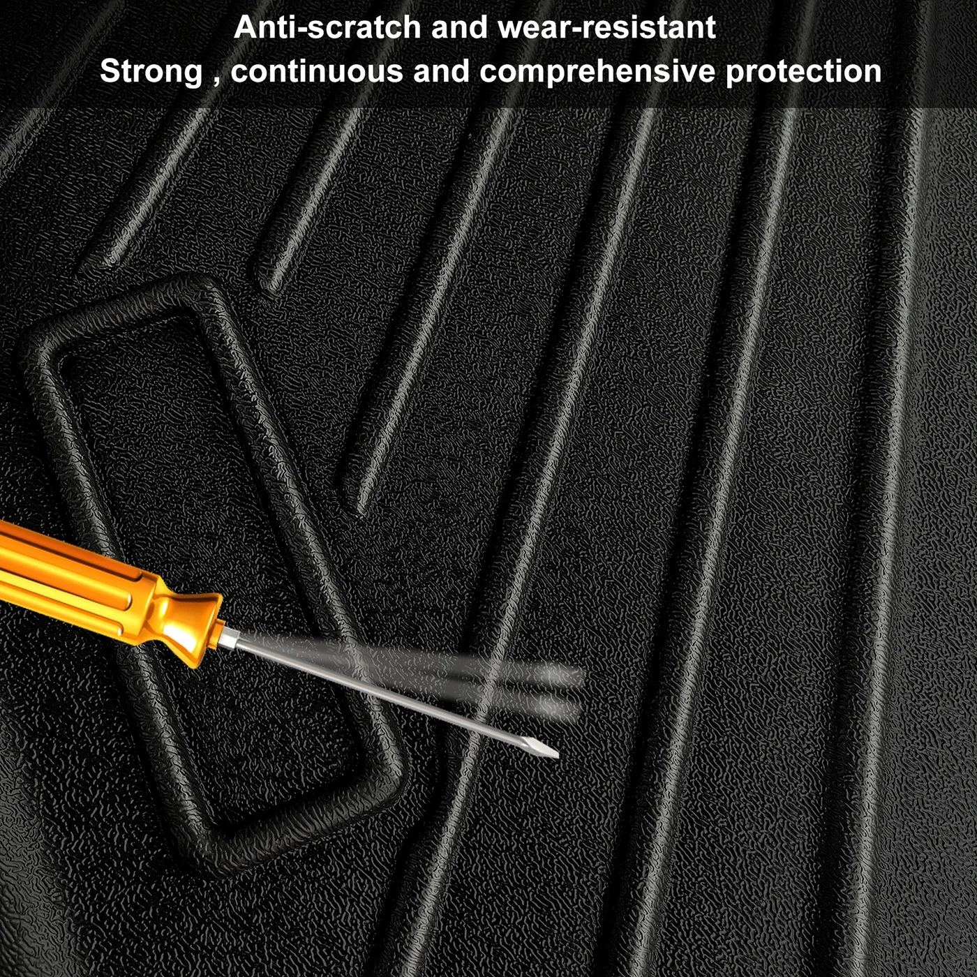 Protect Your Car: These wear-resistant floor mats with deep grooves and ridges will trap moisture, water, dirt and mush, protect the interior of your car from dirt, mud, liquid, sand and stains at all times. When you move items on the cargo cushion, the item will not make any noise. Textured surface helps to prevent items from shifting and sliding.