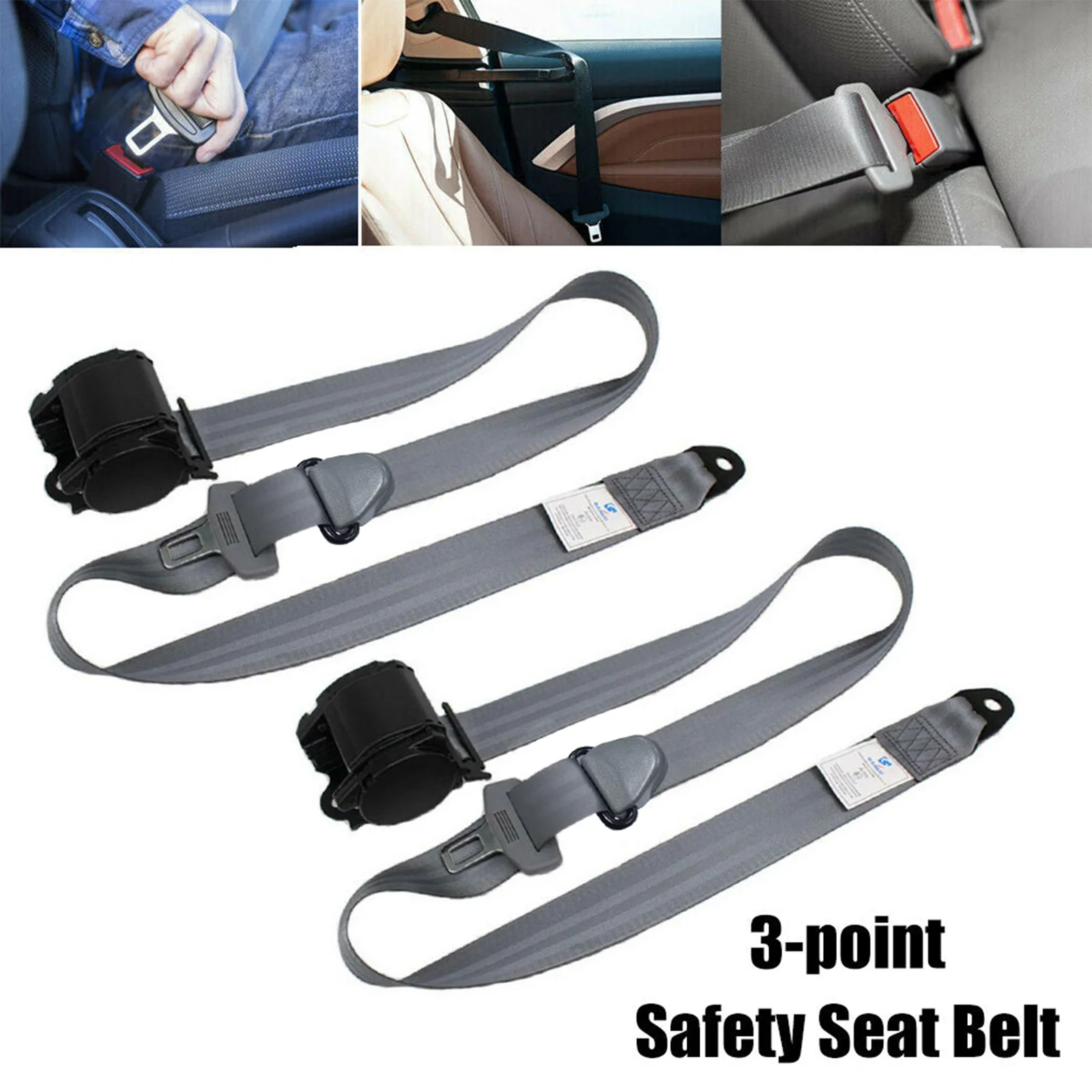 Car Safety Belt Retractable Shoulder 3 Point Retractable Automatic Car Front Seat Strap Buckle Kit for Sedan Truck Bus Van Grey
