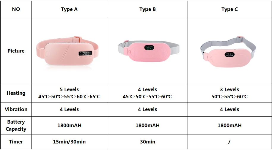 3. With five temperature settings ranging from 45°C to 65°C, the abdominal warmer belt ensures optimal warmth for every user. Easily adjust the heat level using the temperature control button to achieve the most effective warm compress experience during menstruation.
