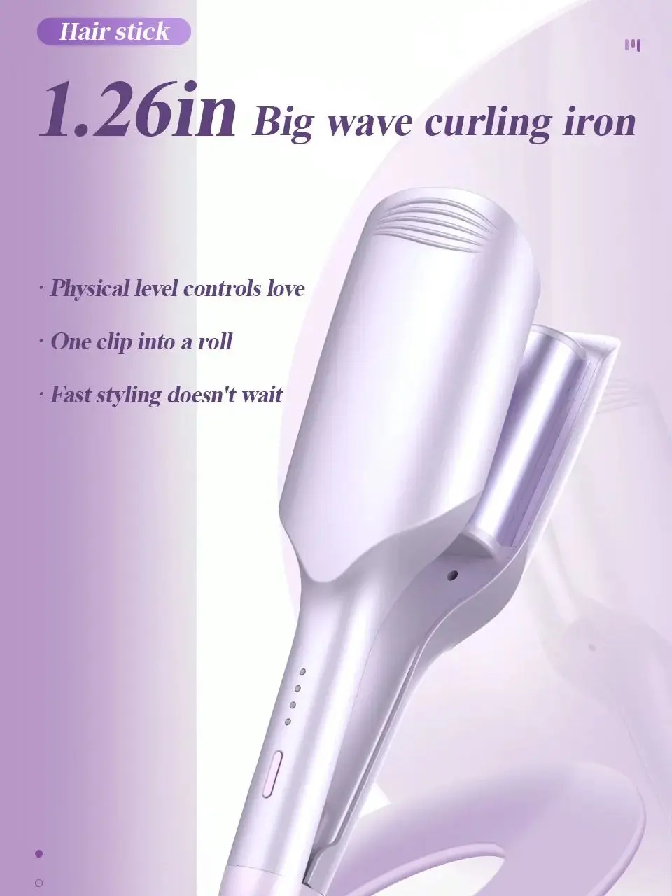 Anti scald design curling iron 32mm/1.26-inch water ripple effect for large wave curls - easy styling hair stick with 4 temperat
