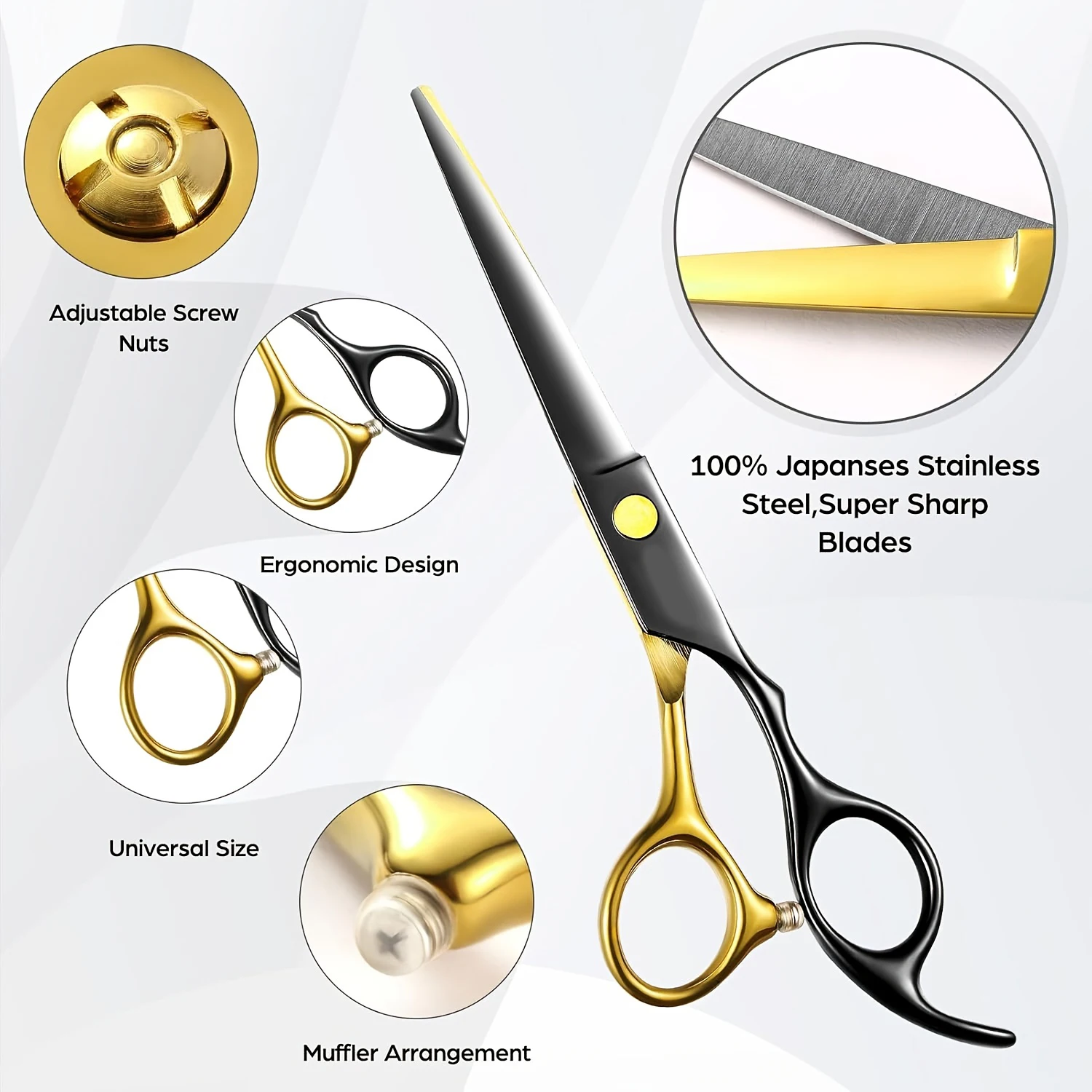 Professional Hair Cutting Kit, 9Pcs Professional Black Gold Hair Cutting, Stainless Steel Barber Supplies, Thinning Shears, Mult