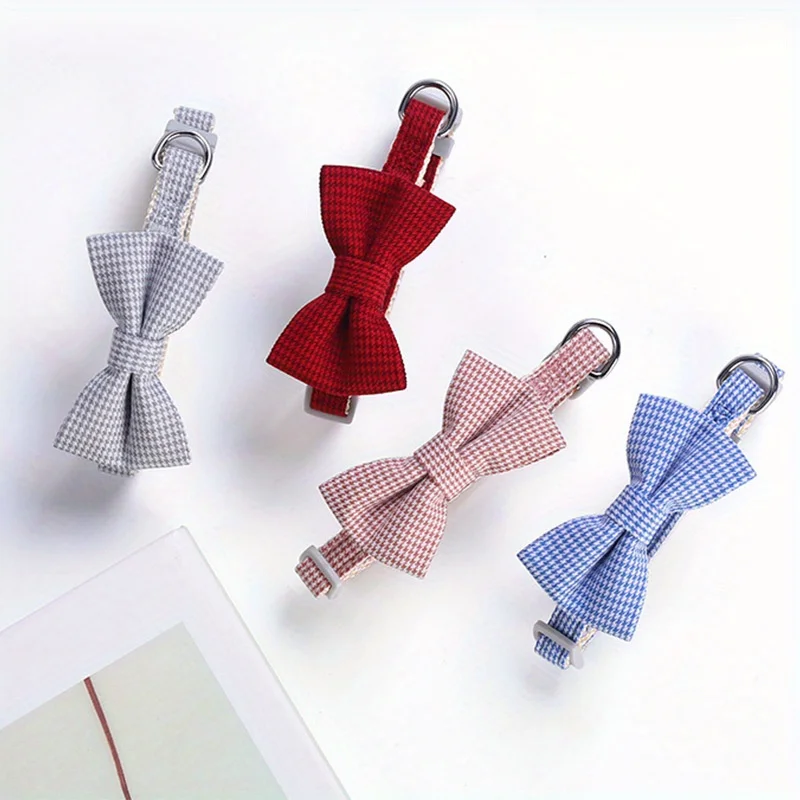 Bow Collar Pet Collar Pet Accessories Solid Color Collar Plaid Collar Sweet Cute Adjustable Fashionable Checkered