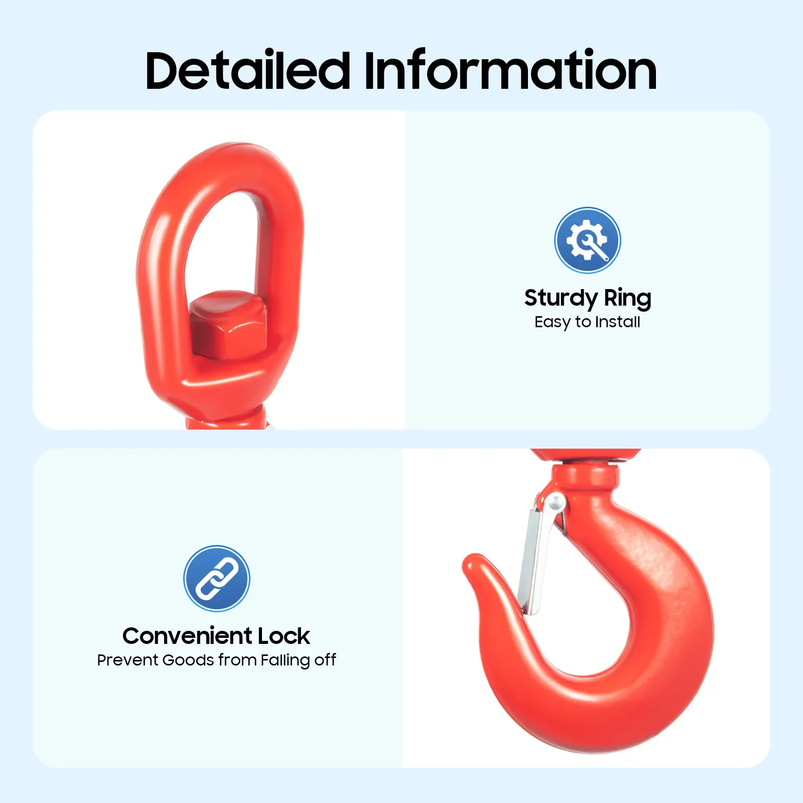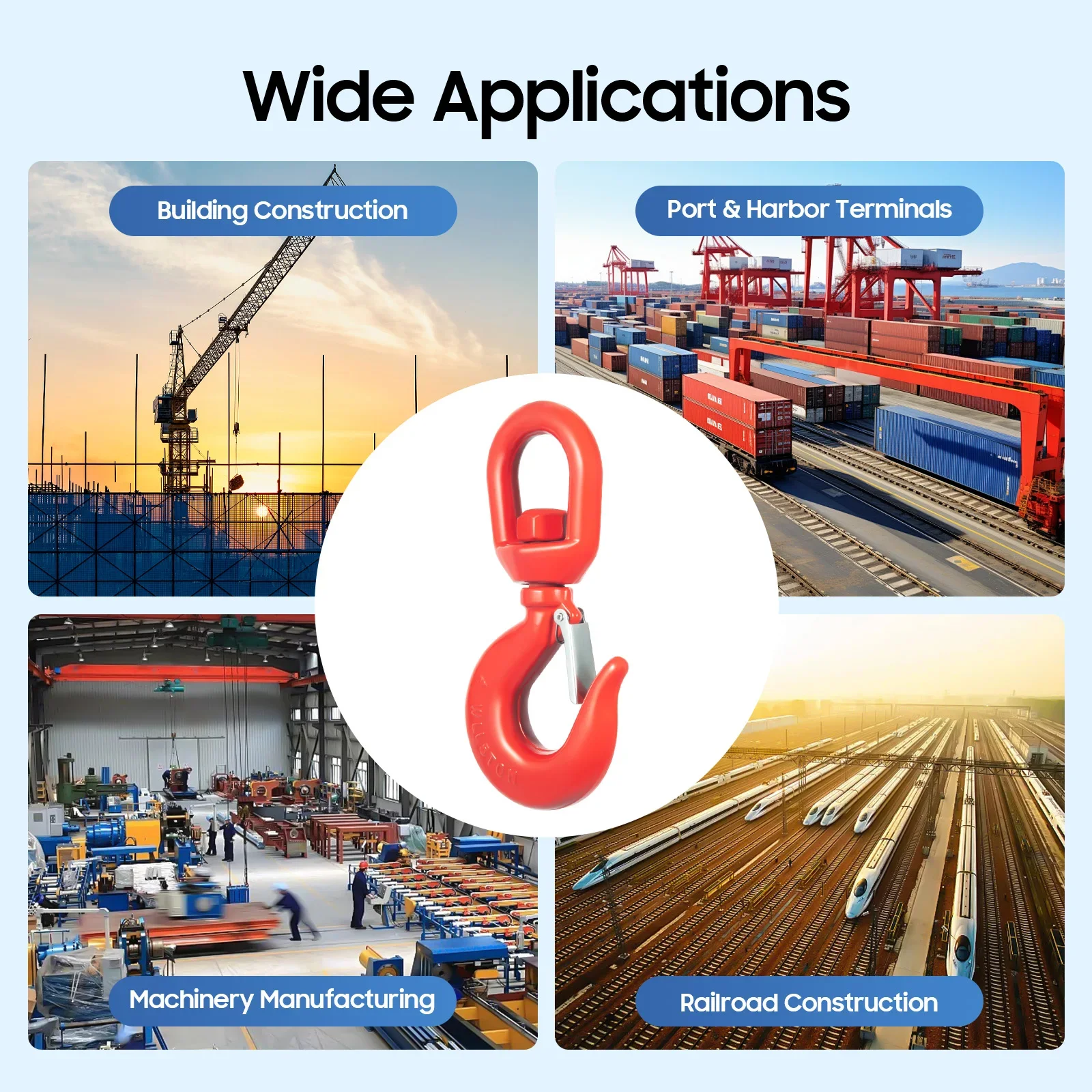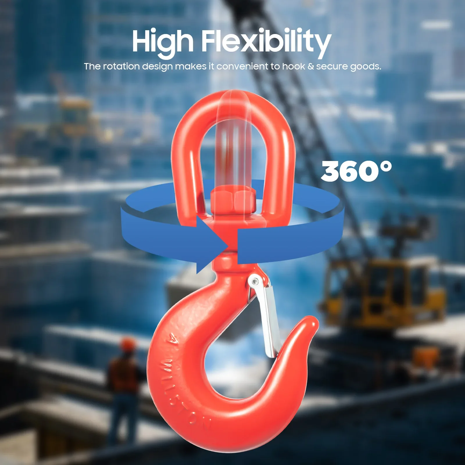 This locking swivel hook is made of high-quality alloy steel and comes with a 360° swivel design and safety latch design, which provides the product with excellent stiffness and load-bearing capacity, allowing the product to help you carry heavy loads, providing stability, safety, and efficiency for your heavy lifting tasks.