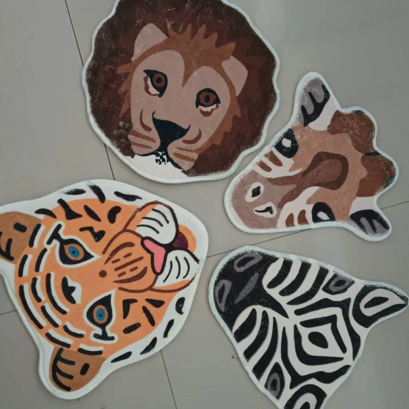 Nordic 3D Wild Animal Carpet Rug Giraffe Tiger Chair Cushion Anti Slip Bathroom Floor Mat Bedroom Bedside Carpet Furry Doormat