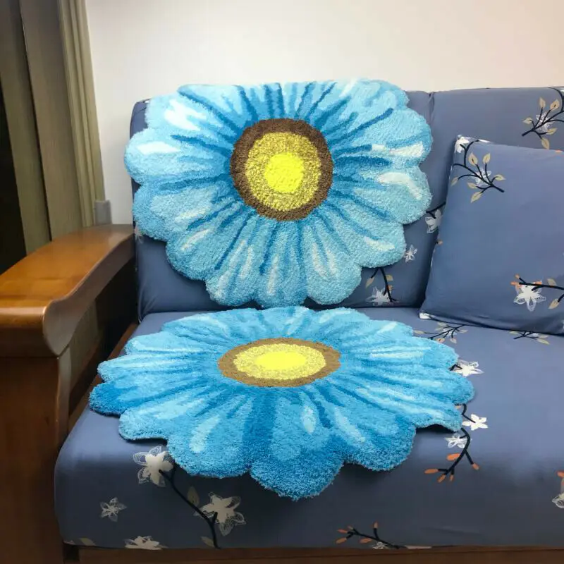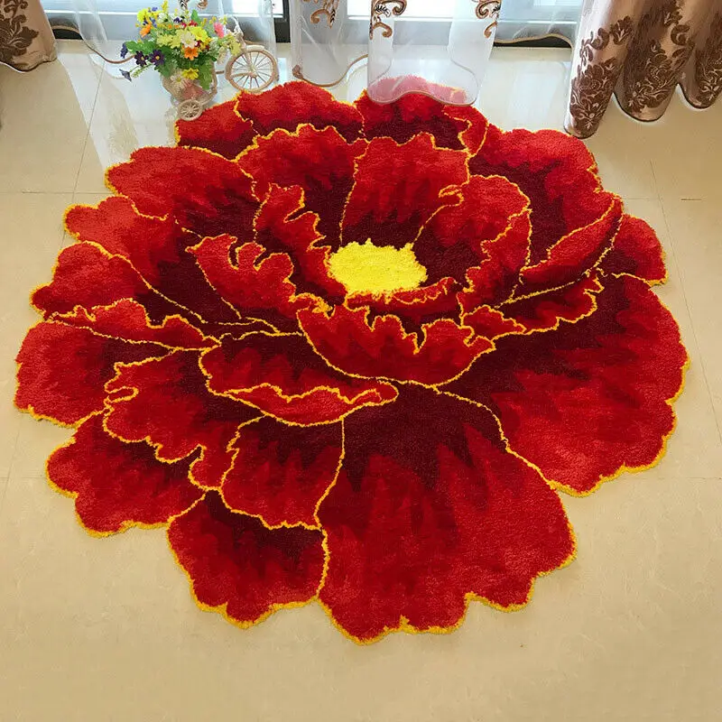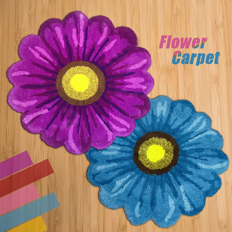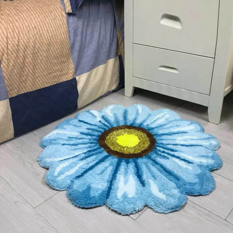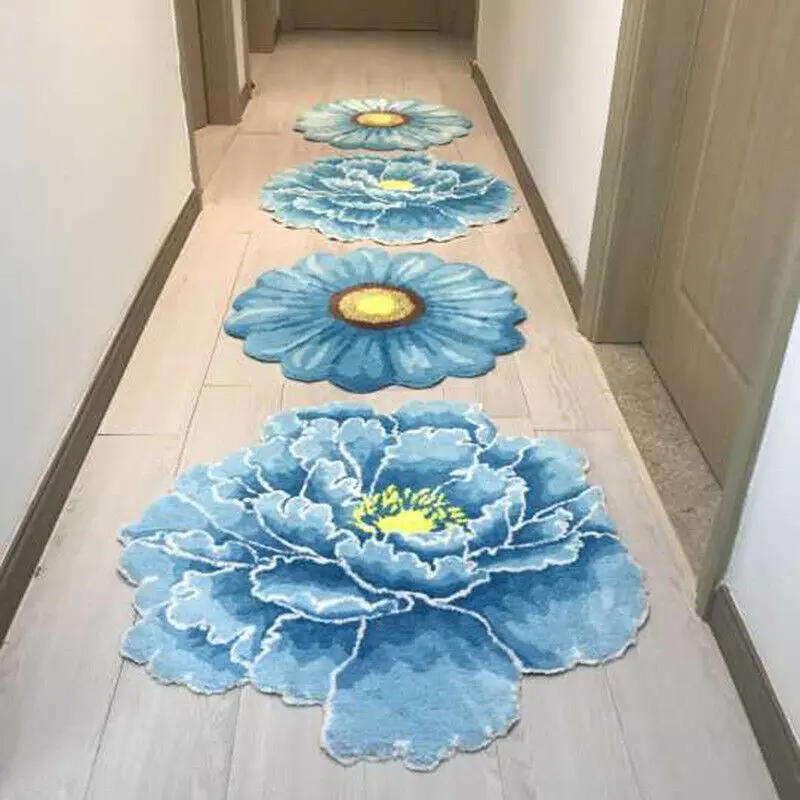 Nordic Art Peony Pattern Thick Carpet Flower Rug Soft Flocking Daisy Rug For Living Room Bedroom Anti-slip Hallway Door Mat