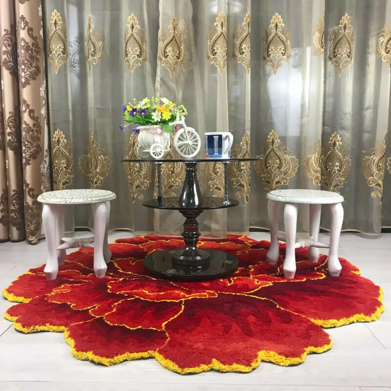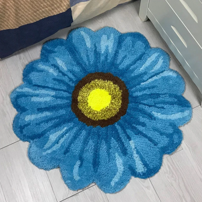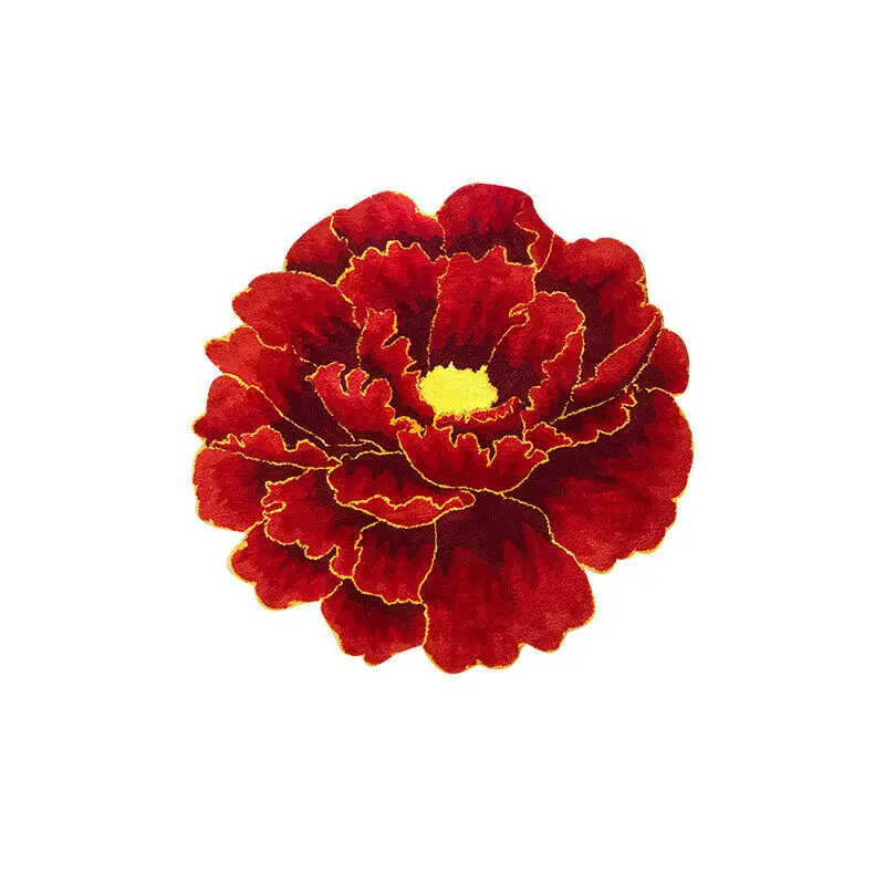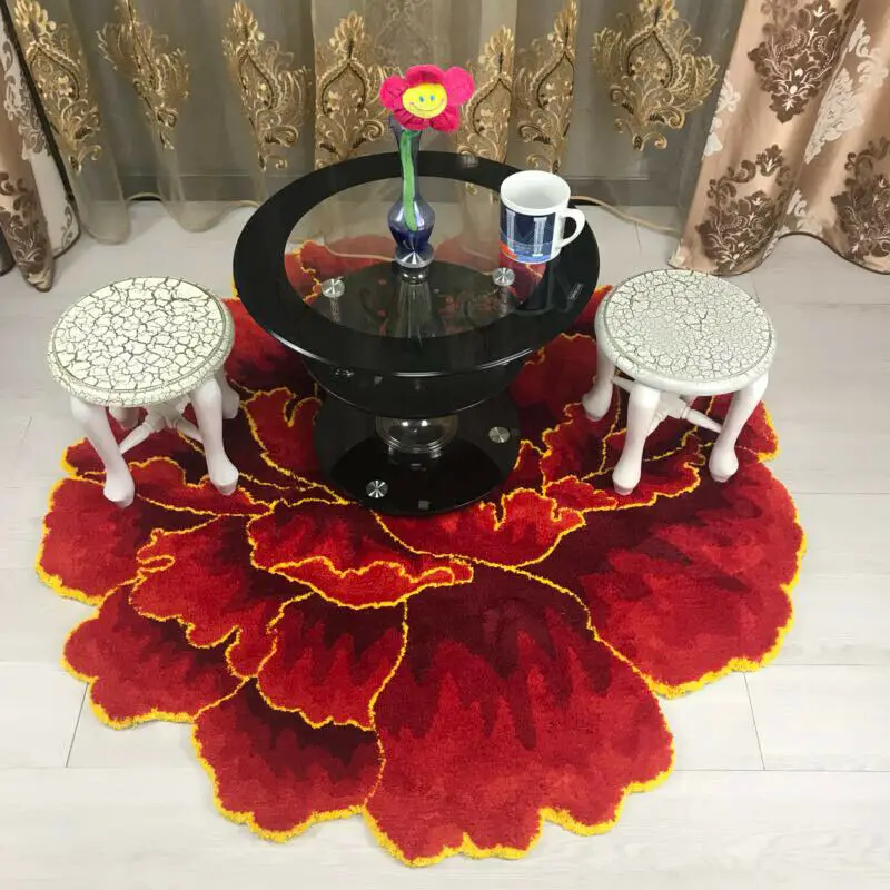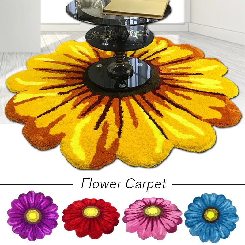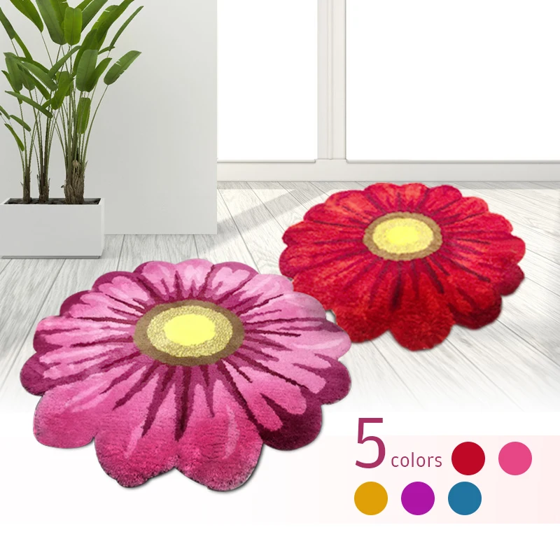 Nordic Art Peony Pattern Thick Carpet Flower Rug Soft Flocking Daisy Rug For Living Room Bedroom Anti-slip Hallway Door Mat