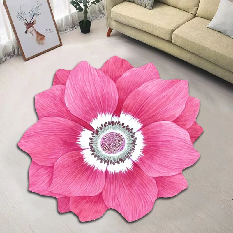 Simple Flower Shape Easy Care Living Room Carpet Large Area Nonslip Dirt Resistant Bedroom Rug Washable Household Absorbent Rugs